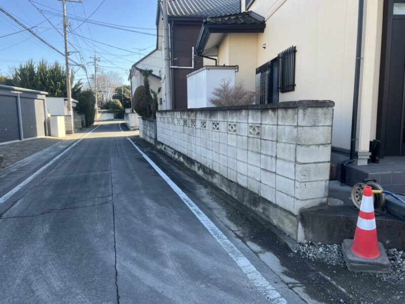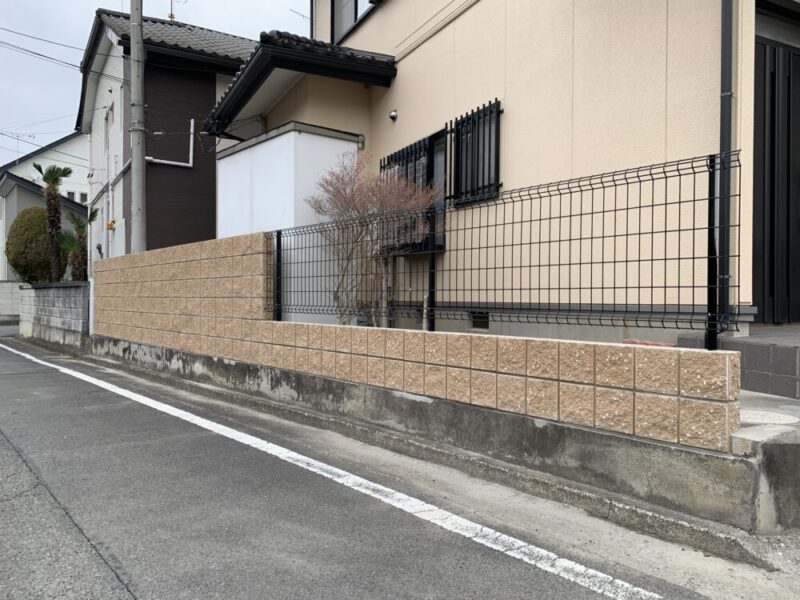高崎市での境界ブロック改修工事です。古くなって、押すとグラグラ揺れる昔の境界ブロック塀を解体しました。そして新たに化粧ブロックとメッスフェンスを取り付けました。